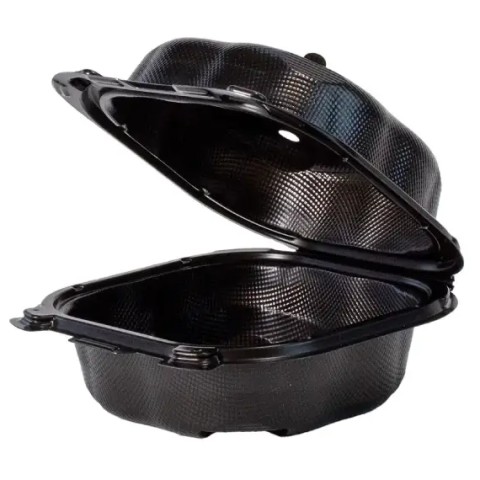 Genpak - Clover Hinged Sandwich Container, Large 5.84x6.25x2.88 Black PP Plastic, 300 count